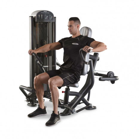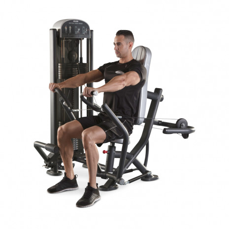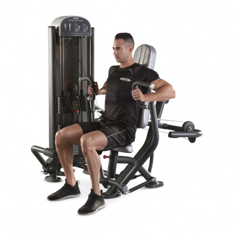 Силовой тренажер 1FE036 компании Panatta предназначен для проработки больших грудных мышц, производя акцент на их нижние пучки, также включается трицепс. Нагрузка тренажера похожа на жим штанги под отрицательным углом, это обеспечивается тем, что к концу движения руки уводятся книзу. На нем можно выполнять жим перед собой в положении сидя. Траектория жима уходит книзу, так как схема крепления рабочих рычагов нижняя. Независимая подвеска рабочих рычагов позволяет работать каждой рукой в отдельности.