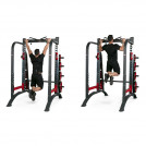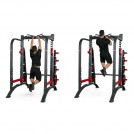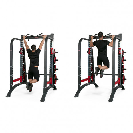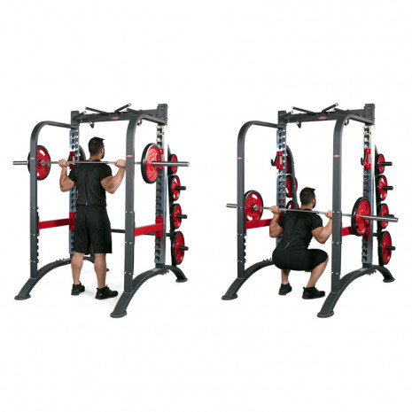Благодаря тщательно продуманной конструкции, страховочные кронштейны и вертикальные стойки образуют закрытые контуры, не позволяющие штанге упасть. Такой силовой тренажер максимально безопасен во время тренировок. Независимо от комплекции и веса, любой пользователь может комфортно проработать нужные мышцы.