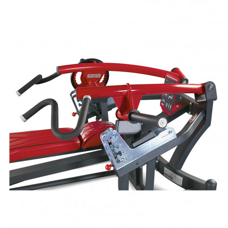 Необходимое плавное изменение нагрузки создает инновационная рычажная система. Эргономичные рукоятки модели обеспечивают различный тип хвата. Независимые рабочие рычаги позволяют работать поочередно двумя руками или только одной рукой. Конструкция также оснащена рычагом легкого старта, при помощи которого пользователь способен занять правильное исходное положение, а в конце тренировки - легко сойти с тренажера.