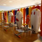 Такая зона, как правило, располагается вблизи зоны силовых тренажеров, порой объединяясь с ней. Зона свободных весов оснащается в гармонии с общей концепцией клуба. Обязательным является наличие в тренажерном зале зеркал.