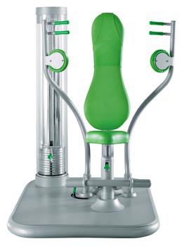 Тренажер имеет нижнюю схему крепления рабочих рычагов, два уровня ручек для хвата, педаль легкого старта (помогает занять исходное положение на тренажере).