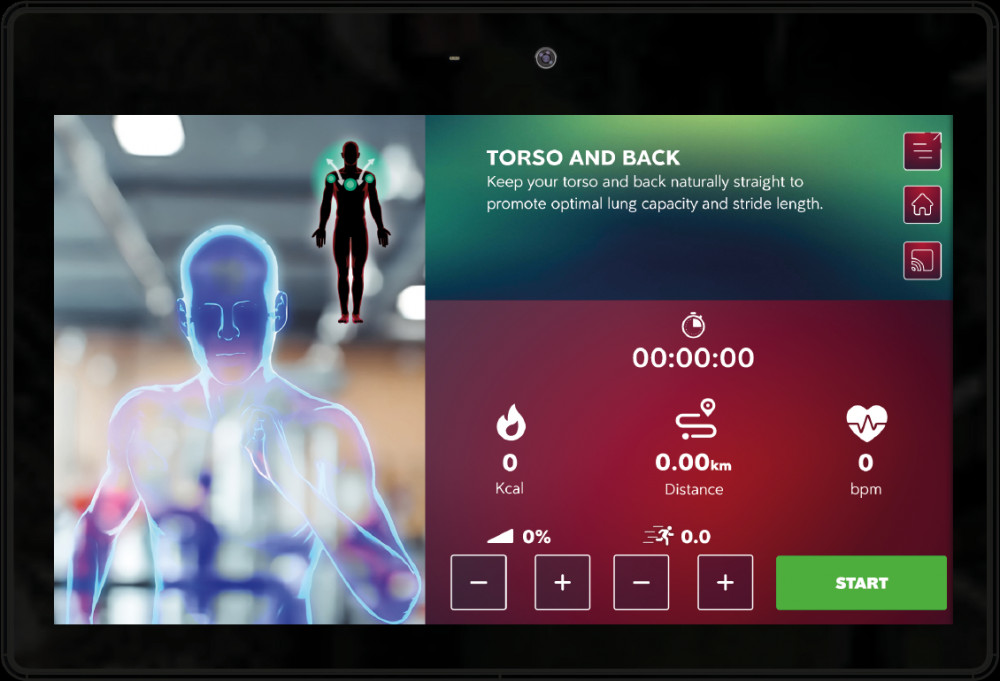 Новый виртуальный помощник, который помогает пользователю правильно тренироваться и предотвращать опасные ситуации. Помощник также определяет, остается ли дорожка в движении, останавливая ленту через несколько секунд.