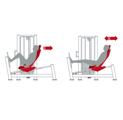 Особый гол полозьев позволяет сиденью двигаться по специально рассчитанной траектории, которая абсолютно безопасна для коленей пользователя. Крестообразные связки и суставы подвергаются минимальному воздействию даже при самых тяжелых весах. Блочная система нагрузки существенно упрощает эксплуатацию такого спортивного оборудования. Установить необходимое сопротивление можно одним движением руки и не вставая с тренажера. Широкая поверхность плиты гарантирует полную свободу при выборе постановки ног. Благодаря чему, в наибольшей степени можно прокачать квадрицепсы или бицепсы ног. Плита имеет уникальное рифленое покрытие, препятствующее опасному проскальзыванию стоп. Каждая нога соприкасаются с поверхностью платформы только носком ступни.