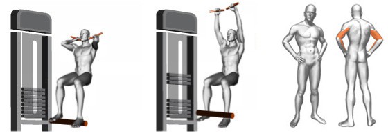 Несомненным достоинством трицепс-машины можно выделить простую регулировку высоту сиденья. Чтобы амплитуда движений принесла наибольший эффект, руки и голова пользователя должны располагаться определенным образом относительно рукояти. Практичный упор для ног не позволяет корпусу раскачиваться. Тело занимающегося человека плотно прижимается спиной непосредственно к спинке сиденья. В зависимости от поставленных целей атлеты способны самостоятельно выбрать и установить наиболее удобный хват, поскольку рукоятка имеет изогнутую форму. На протяжении всей тренировки спортсмены легко держат предплечья параллельно либо могут их повернуть друг к другу, что схоже с техникой занятий с EZ-грифом.