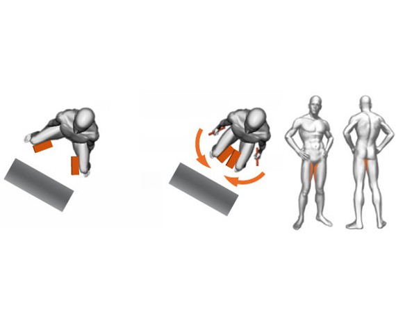 Тренажер снабжен рычагом «легкого старта», который позволяет поворачивать рычаги с подушками для упора бедер. Он необходим для занятия исходного положения в начале упражнения, а также по его окончании. Пружинный фиксатор, расположенный на правом поворотном диске, позволяет регулировать начальный угол рабочих рычагов. Тренажер снабжен ручками, которые расположены по бокам сиденья. Они служат для упора и большей концентрации во время выполнения упражнения.