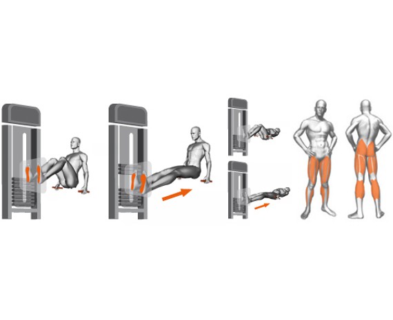 Особенность этого тренажера состоит в том, что регулируемую спинку можно устанавливать как в вертикальном, так и в горизонтальном положении, что позволяет снизить нагрузку на позвоночник. Положение спинки меняется с помощью фиксатора, который расположен справа от сиденья. Когда спинка устанавливается в горизонтальное положение, над ее плоскостью выдвигаются наплечники, и в таком положении жим ногами эквивалентен приседаниям на гак-машине. Таким образом, этот тренажер сочетает в себе «два-в-одном» – жим ногами и гаккеншмидт.