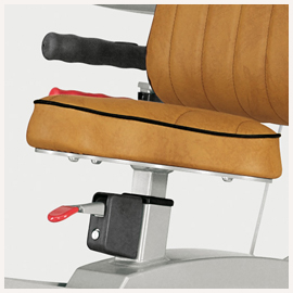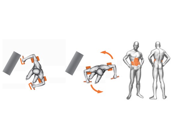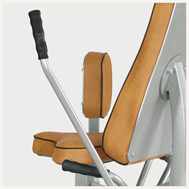 С помощью анатомических упоров для бедер, которые поддерживают их внешней и с внутренней стороны, нижняя часть тела пользователя фиксируется в статичном положении, не создавая при этом никакого давления на бедра. Тренажер снабжен специальными подушками-упорами для рук, которые обеспечивают максимальный комфорт при вращательных движениях корпусом. Фиксирующие рукояти позволяют менять амплитуду вращения корпуса, делая акцент на развитие его левой или правой стороны.