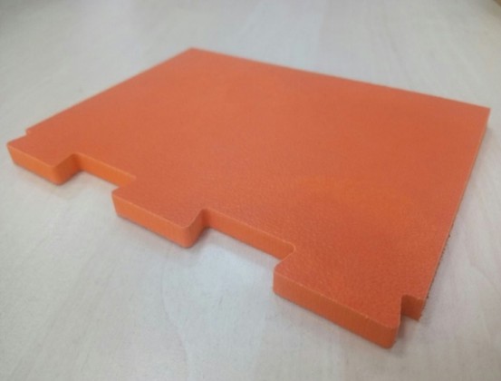 Однослойное модульное покрытие Fitness Indoor Tiles бренда Pavitec имеет толщину 10 мм и плотность 350. Текстура поверхности модулей «кожа».