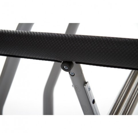 Для изготовления компактного MVe фитнес-стула используется чистый анодированный алюминий, что позволило сделать его очень легким и мобильным. При этом тренажер имеет надежную и прочную конструкцию, за счет чего он выдерживает пользователей любого веса и комплекции.