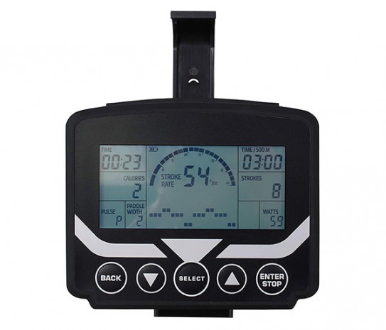 Удобная консоль с легко читаемым ЖК-дисплеем позволяет отслеживать тренировочный процесс с помощью таких параметров, как дистанция, время тренировки, частота гребков, пульс и израсходованные калории.