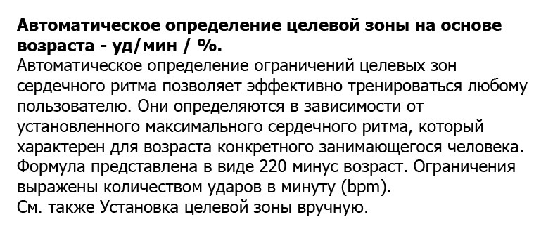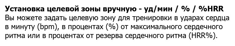 Для подсчета израсходованный калорий представлена опция OwnCal. Она рассчитывает количество затраченных калорий в процессе тренировки, в зависимости от выбранного роста, веса, пола, возраста и индивидуальных показателей максимальной ЧСС (HRmax). При этом также учитывается интенсивность тренировки.