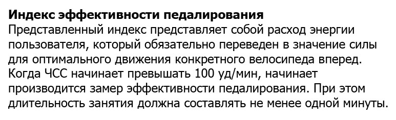 Сверхточный беспроводной датчик является оптимальным выбором для измерения частоты педалирования, которая измеряется в об./мин. Такая частота педалирования определяется в режиме только реального времени. Для сравнения данных с прошлыми занятиями предусмотрен анализ средних показателей за каждую конкретную тренировку.