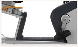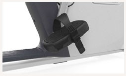 При помощи рукояток, расположенных возле консоли, легко садиться на тренажер и спускаться с него. Оптимальное расположение кистей рук достигается за счет рукояток для езды, которые также применяются для мониторинга пульса.