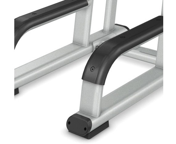 Большие накладки из нескользящего материала, расположенные на опорах тренажера, выполняют роль приступки и позволяют безопасно встать на тренажер и сойти с него.