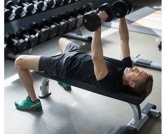 Дизайн скамьи обеспечивает устойчивость пользователю, не ограничивая при этом диапазона движений.