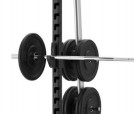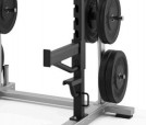 Обратные опоры имеют небольшой угол наклона, что позволяет грифу после выполнения упражнения скатываться к вертикальным стойкам. Благодаря этому обеспечивается устойчивость положения штанги при хранении.