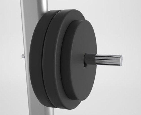 На раме тренажера имеются держатели для дисков, высота расположения которых оптимизирована для легкой загрузки/разгрузки снарядов, чтобы обеспечить удобство всем пользователям.