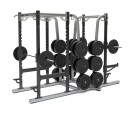 В основании рамы имеются два гнезда, обеспечивающих вертикальное хранение олимпийских грифов. Специальный бортик защищает гриф от возможности механических повреждений.