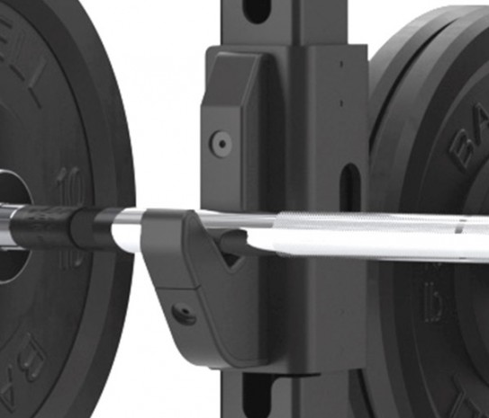 Обратные опоры имеют небольшой угол наклона, что позволяет грифу после выполнения упражнения скатываться к вертикальным стойкам. Благодаря этому обеспечивается устойчивость положения штанги при хранении.