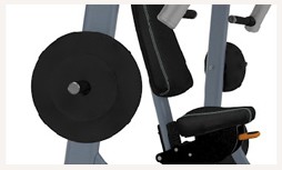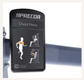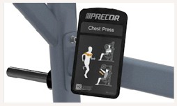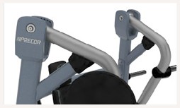 Конструкция тренажера Жим от груди от Precor предусматривает возможность движения рукояток независимо по сходящей траектории. Также возможна независимая работа каждой рукой. За счет прикладываемого усилия, к окончанию упражнения задействовано больше мышечных волокон. Шесть штырей выдерживают нагрузку более, чем на 360 кг.
