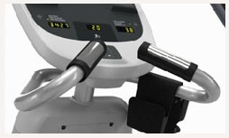 Неподвижные ручки тренажера оснащены контактными датчиками частоты пульса. Они повышают точность измерений и удобны для пользователей с разной комплекцией.