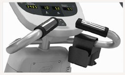 Неподвижные ручки тренажера EFX 815 оснащены контактными датчиками частоты пульса. Они повышают точность измерений и удобны для пользователей с разной комплекцией.