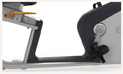 Биомеханика. Правильная биомеханика педалирования обеспечивается за счет того, что конструкция горизонтального тренажера во многом повторяет особенности, разр аботанные для вертикальных велотренажеров. К примеру, угол направляющей сиденья, который составляет 15°, установлен со смещением по отношению к приводу, что позволило повысить эффективность работы педалями и снизить нагрузку на коленные суставы. В дополнение к этому имеется небольшое смещение относительно коленчатого вала. За счет этого колено размещается непосредственно над осью педалей, когда они расположены в точках «2 часа» и «8 часов».