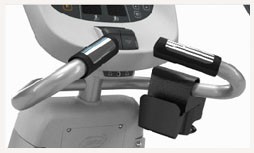 Неподвижные ручки тренажера оснащены контактными датчиками частоты пульса. Они повышают точность измерений и удобны для пользователей с разной комплекцией.