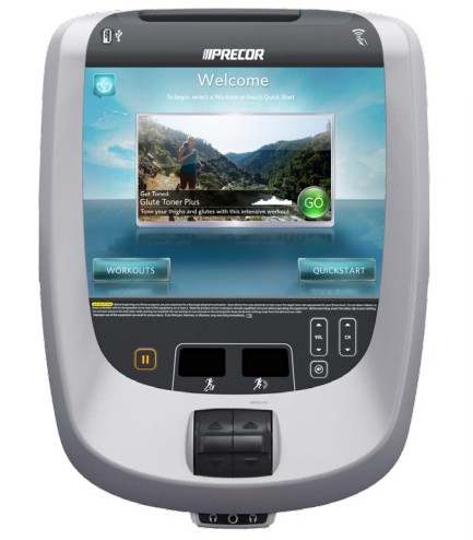 Опции интегрированных развлекательных средств адаптивного тренажера AMT 885 бренда Precor включают блок показаний, который является опцией, встраиваемый персональный видеоэкран (ПВЭ)с сенсорным управлением и диагональю 15 дюймов.