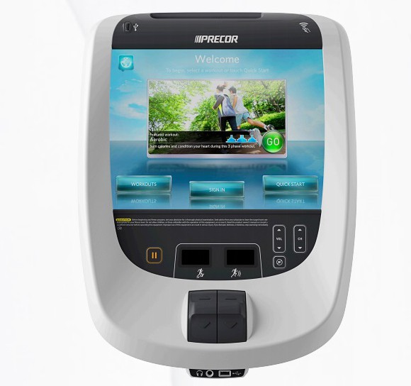 Консоль оборудована емкостным сенсорным LCD-дисплеем с 15-ти дюймовой диагональю и цифровой клавиатурой. Дисплей обеспечивает доступ к функциям тренажера и отображает все тренировочные параметры, что позволяет следить за ходом тренировки.С помощью тактильных мембранных клавиш можно регулировать громкость, отключать звук, переключать каналы, а также приостанавливать тренировку. Мультиязычный дисплей позволяет выбрать подходящий язык меню. Встроенный пакет тренировочных программ позволяет выбрать из 16-ти программ максимально эффективную тренировку, отвечающую запросам пользователя.