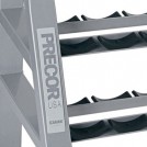 Эта стойка предназначена для хранения легких гантелей весом до 11 кг (25 фунтов). На ней есть прорезиненные ячейки, которые защищают покрытие гантелей. С ее помощью можно максимально рационально использовать площадь зала.