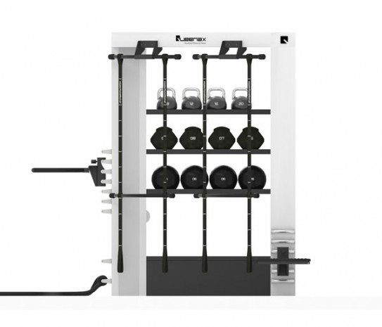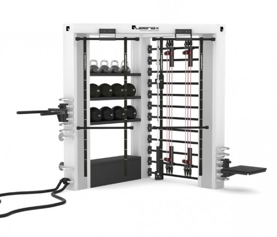 Комплекс позволяет одновременно заниматься четырем пользователям, что расширяет возможности фитнес-залов. Кроме того, его можно использовать для персональных тренировок. Комплекс имеет продуманную систему хранения, которая не только удобна, но и проста. Благодаря этому все аксессуары легко размещаются по своим местам после тренировки, что позволяет быстро привести в порядок пространство для занятий.