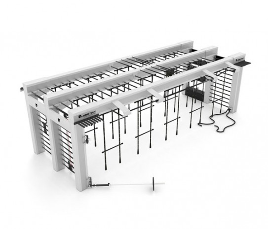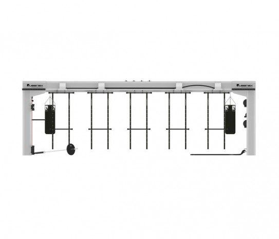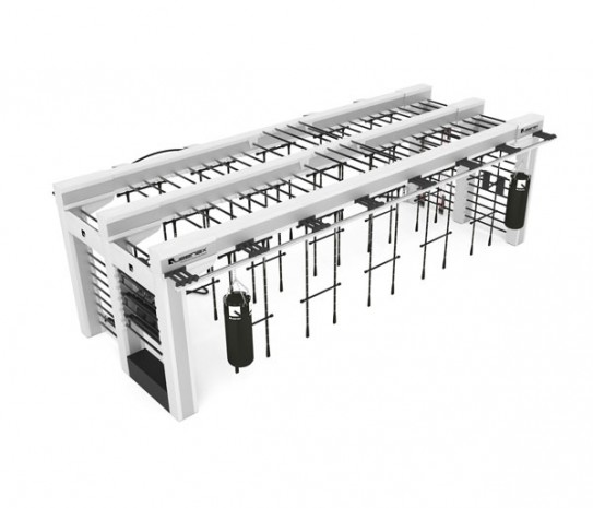 Функциональная рама X3 900 Bridge PWRQFT23090QWT101 бренда Precor из линейки оборудования Queenax представляет собой конфигурацию 26-ти станций, которые расположены в 3 ряда. Рама позволяет организовать оптимальную зону для группового функционального тренинга, а также для тренировок под нагрузкой собственного веса. При этом в зале остается много свободного места для проведения групповых тренировок с использованием других программ. Наличие модульных опций для хранения необходимых для тренировок аксессуаров и снарядов позволяют тренирующимся легко пользоваться нужным инвентарем.