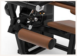 Для правильной биомеханики тренажер оснащен сиденьем с широкой подушкой, которая расположена под эргономичным 15-ти градусным наклоном. Благодаря этому колени пользователя правильно расположены относительно поворотной точки, что обеспечивает изолированную работу мышц и повышенный комфорт.