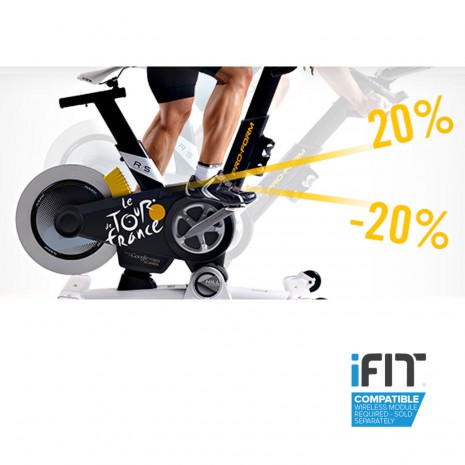 Занятия на этом тренажере имитируют езду по пересеченной местности с множеством спусков и подъемов (этапы Tour de France 2015 года).