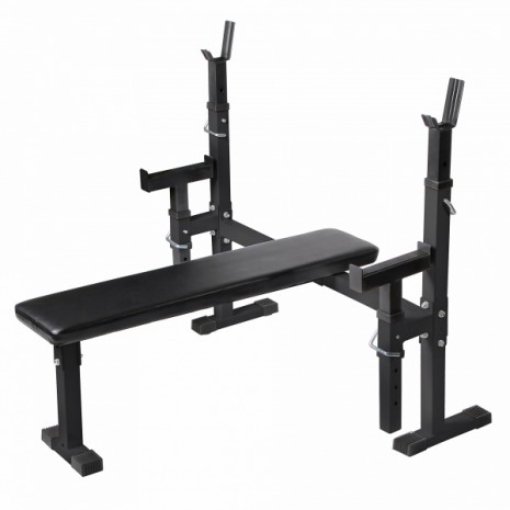 Скамья для жима со страховочными упорами предназначена для домашнего использования.