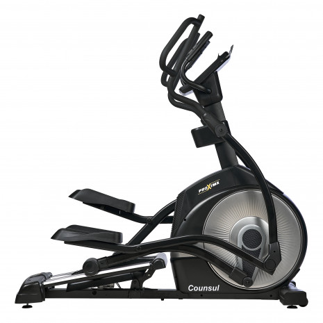 Переднеприводной эллиптический тренажер PROXIMA Counsul - это надежный и функциональный вариант домашнего фитнес оборудования премиум-класса. Разработанный с расчетом на многолетнюю эксплуатацию, этот тренажер обеспечивает максимальную нагрузку до 180 кг и изготовлен из прочной высоколегированной стали.