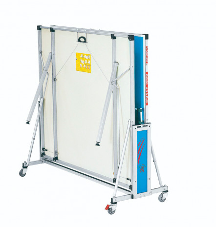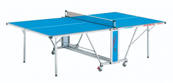 Теннисный стол имеет 4 колеса диаметром 75 мм, все колеса маневренные и два колеса оснащены системой блокировки. Ножки стола и колеса можно отрегулировать по высоте. Это необходимо при установке стола на неровной поверхности.