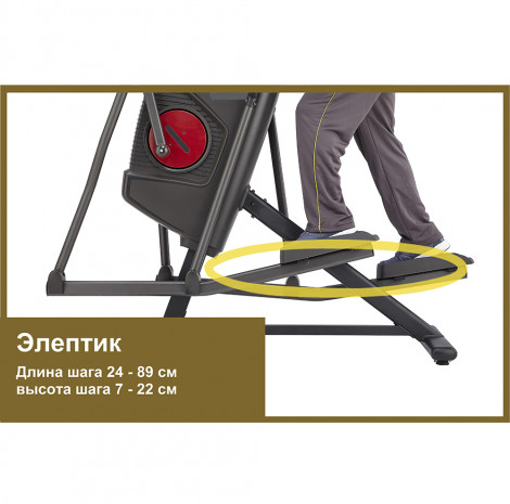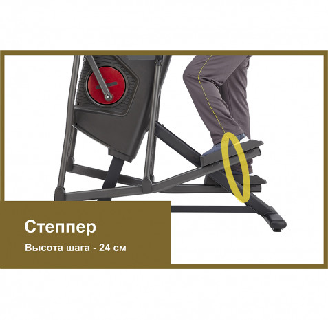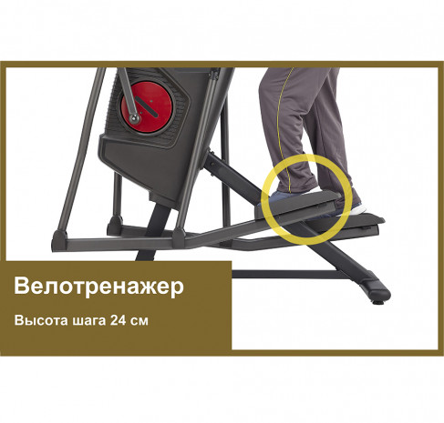 Велотренажер. Траектория движения педалей проходит по кругу, аналогично езде на велосипеде. Высота шага - 24 см.