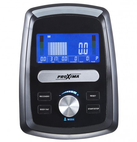 Тренажер оснащен современной консолью с многофункциональным LCD дисплеем, на который выводятся все основные тренировочные параметры, в том числе время тренировки, уровень сопротивления, текущую программу, пульс и сожженные калории.