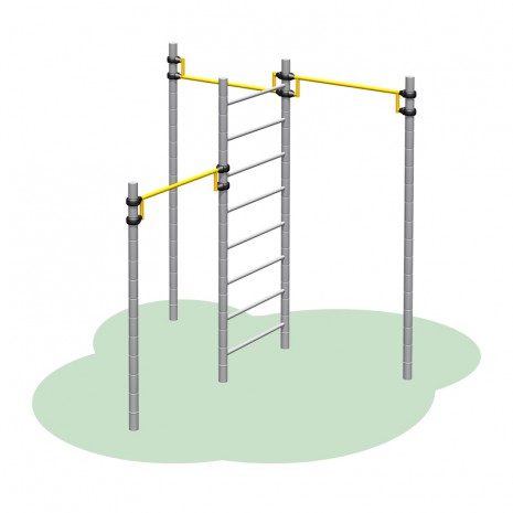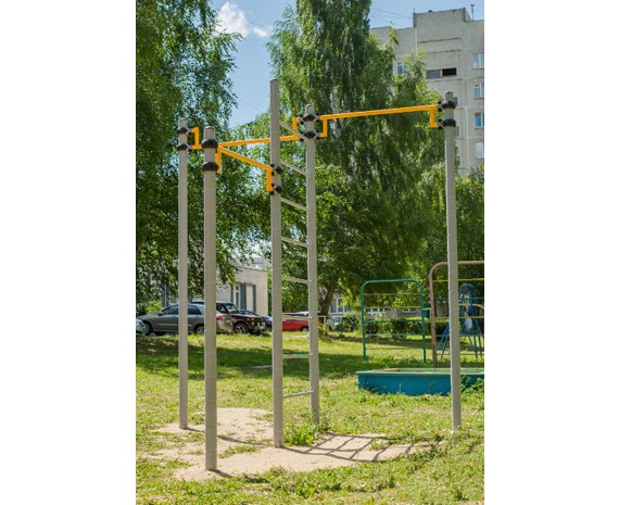 Для обеспечения большей прочности элементы комплекса устанавливаются при помощи грунтозацепов с покрытием от коррозии. Они обязательно бетонируются на глубину не меньше 600 мм. Элементы для крепежа оцинкованы и сверху закрываются колпачками из пластика. Для изготовления элементов спортоборудования использованы безопасные для здоровья детей материалы, которые отвечают всем предусмотренным для этой категории товаров нормам.