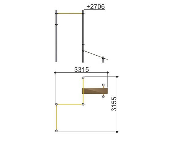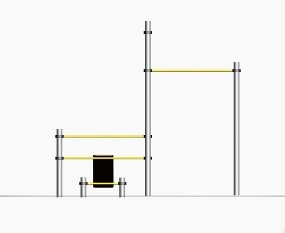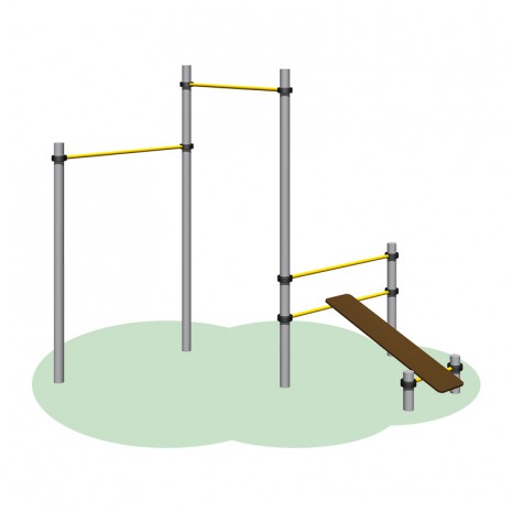 Двойной турник с лавкой для пресса 501.07.00 бренда Romana предназначен для оборудования уличных спортивных площадок и является частью комплексного оборудования для занятий Workout.