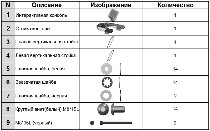 2.1 Сборка тренажера 550Ti Для начала откройте коробку, а затем удалите весь картон вместе с пенопластом. Перед тем, как начать сборку тренажера, проверьте, все ли детали имеются в комплекте согласно нижеприведенному списку. Для сборки используйте шестигранник на 6 мм. Чтобы собрать тренажер, соблюдайте нижеприведенную инструкцию.