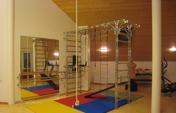 Гимнастические комплексы позволяют проводить регулярные тренировки в квартире или доме. Они отличаются функциональностью, прочностью, безопасностью, а также широким выбором навесного оборудования. Конструкция гимнастического обычно состоит из рукохода, нескольких видов лестниц, турника, каната и гимнастических колец.