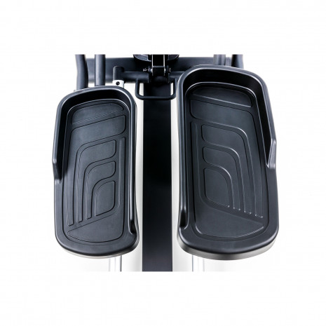 При проектировании тренажера большое внимание уделялось деталям, чтобы повысить безопасность и комфорт пользователя. Увеличенная длина шага и плавная система привода делают тренировки более естественными, эффективными и комфортными. Большие эргономичные педали имеют небольшой наклон внутрь, благодаря чему обеспечивается наилучшая биомеханика движений и уменьшается нагрузка на суставы и мышцы, а значит тренировки проходят без стресса и напряжений. А за счет увеличенных габаритов педалей обеспечивается удобное положение ног для оптимального комфорта пользователя.