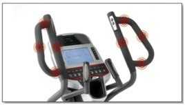 В поручни встроены регуляторы наклона и сопротивления, что дает возможность изменения этих настроек без отрыва рук от рукоятей. Регуляторы имеют максимально удобное расположение, соответствуя позиции большого пальца.