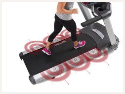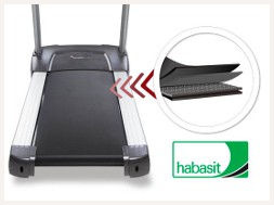 Основной характеристикой спортивного оборудования от компании Habasit® Group – швейцарского производителя с 60-летним опытом работы, является надежность, безопасность, долговечность, низкое энергопотребление. В беговой дорожке CT850 установлено многослойное оригинальное беговое полотно и современная парафинированная дека UltimateDeck толщиной 25 мм. Это обеспечивает минимальное обслуживание самосмазывающейся деки – дополнительная смазка понадобится после пробега в тысячу миль.
