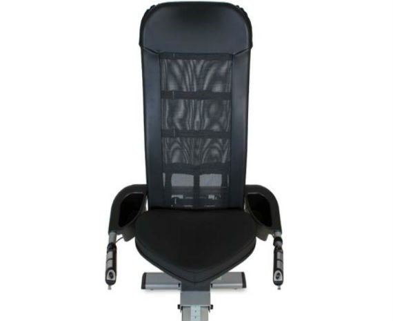 Для подъема на велотренажер производитель предусмотрел специальную ступеньку, чтобы человек с ограниченными возможностями не испытывал каких-либо трудностей. Помимо низкой рамы предусмотрена высокая прочная спинка из нейлоновой сетки, которая легко регулируется, в зависимости от физических возможностей и комплекции пользователя. Спинка может быть зафиксирована на 16 уровнях. Анатомическое сиденье гарантирует несомненное удобство в процессе длительных занятий, одновременно снижая нагрузку на мышцы спины.