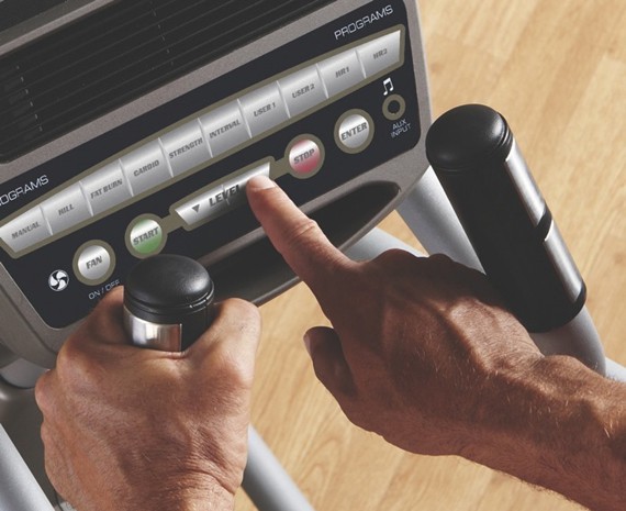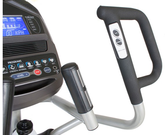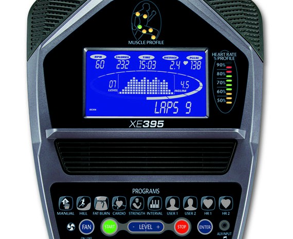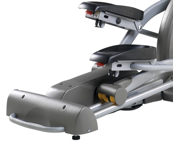 Для изменения акцента нагрузок на мышцы производитель предусмотрел 20-ступенчатую регулировку угла наклона. В процессе тренировки эллиптический тренажер гарантирует мягкий плавный ход и бесшумность. Оборудование оснащение усиленными подшипниками и тяжелым стальным маховиком весом 14 кг. Не останавливая тренажер, можно при помощи кнопок, интегрированных в подвижных рукоятках, мгновенно изменить сопротивление. Измерение пульса осуществляется посредством специально предназначенного кардио-пояса. Креативная функция Heart Rate%Profile контролирует ЧСС в процентном соотношении к максимальным возрастным показателям.
