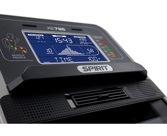 Эллиптический тренажер XE795 бренда Spirit Fitness оснащен регулируемой консолью, угол наклона которой может изменяться до 10°. Благодаря этому пользователи разного роста могут подобрать удобный угол обзора.